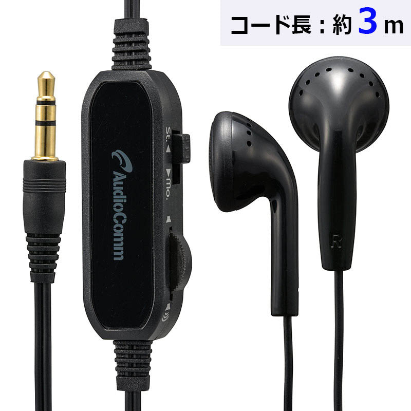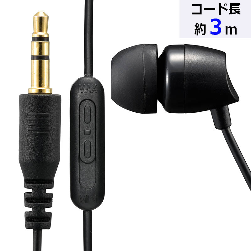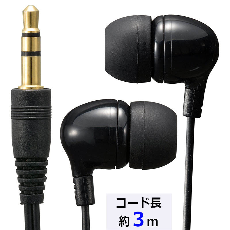 ステレオインナーホン(耳栓型/I型プラグ/コード長3m/ブラック)_03-1656_HP-B302N_OHM(オーム電機)