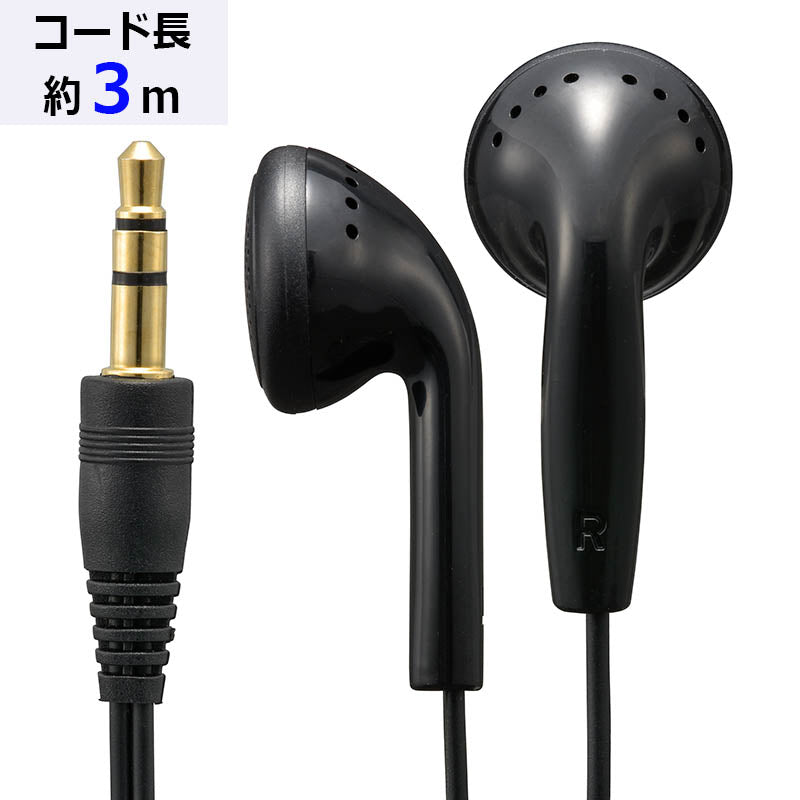 ステレオインナーホン(インナー型/I型プラグ/コード長3m/ブラック)_03-1655_HP-B301N_OHM(オーム電機)