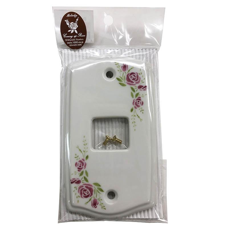 磁器スイッチプレート(1口用/波型/カミングアップローズ柄)_09-1836_CUR-TMW-C-1_OHM(オーム電機)