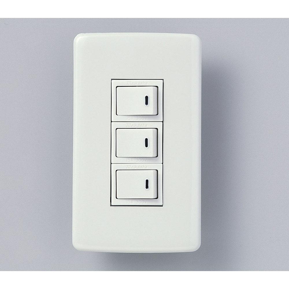 商品仕様■定格:300V 15A■片切スイッチ×3■適合配線:VVF 1.6mm,2.0mm