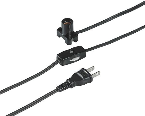 特長 ●家庭用コンセントに差し込んで簡易照明として使用できます。 ●電球は20W以下のものをご使用ください。 商品仕様■口金12mm ■中間スイッチ付 ■1A 125V ■材質:ユリア樹脂(ソケット部)■色:ブラック