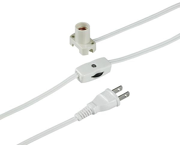 特長 ●家庭用コンセントに差し込んで簡易照明として使用できます。 ●電球は20W以下のものをご使用ください。 商品仕様■口金12mm ■中間スイッチ付 ■1A 125V ■材質:ユリア樹脂(ソケット部)■色:ホワイト