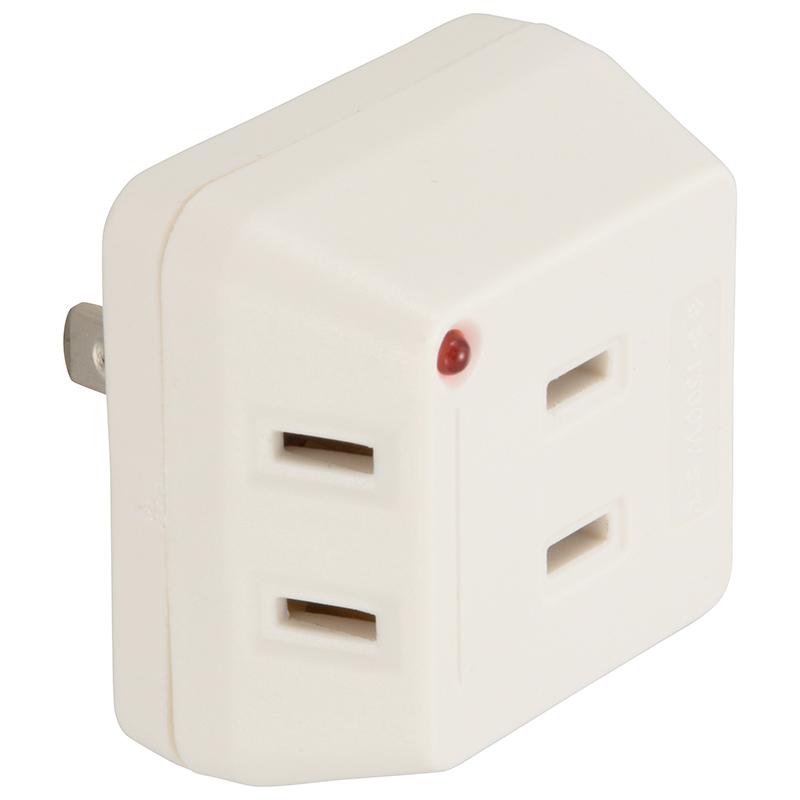 特長 ●ホコリシャッター付コーナータップ●安心の難燃・耐熱ボディ●熱に強いPBT樹脂使用で耐熱性アップ●1つのコンセントを3分配●絶縁カバー付きフリーキャップ式(180°回転)プラグ●ホコリ防止安全シャッター●トラッキング火災防止対策●カラーは白 商品仕様 コンセント 3個口、15A 125V 合計1500ワットまで