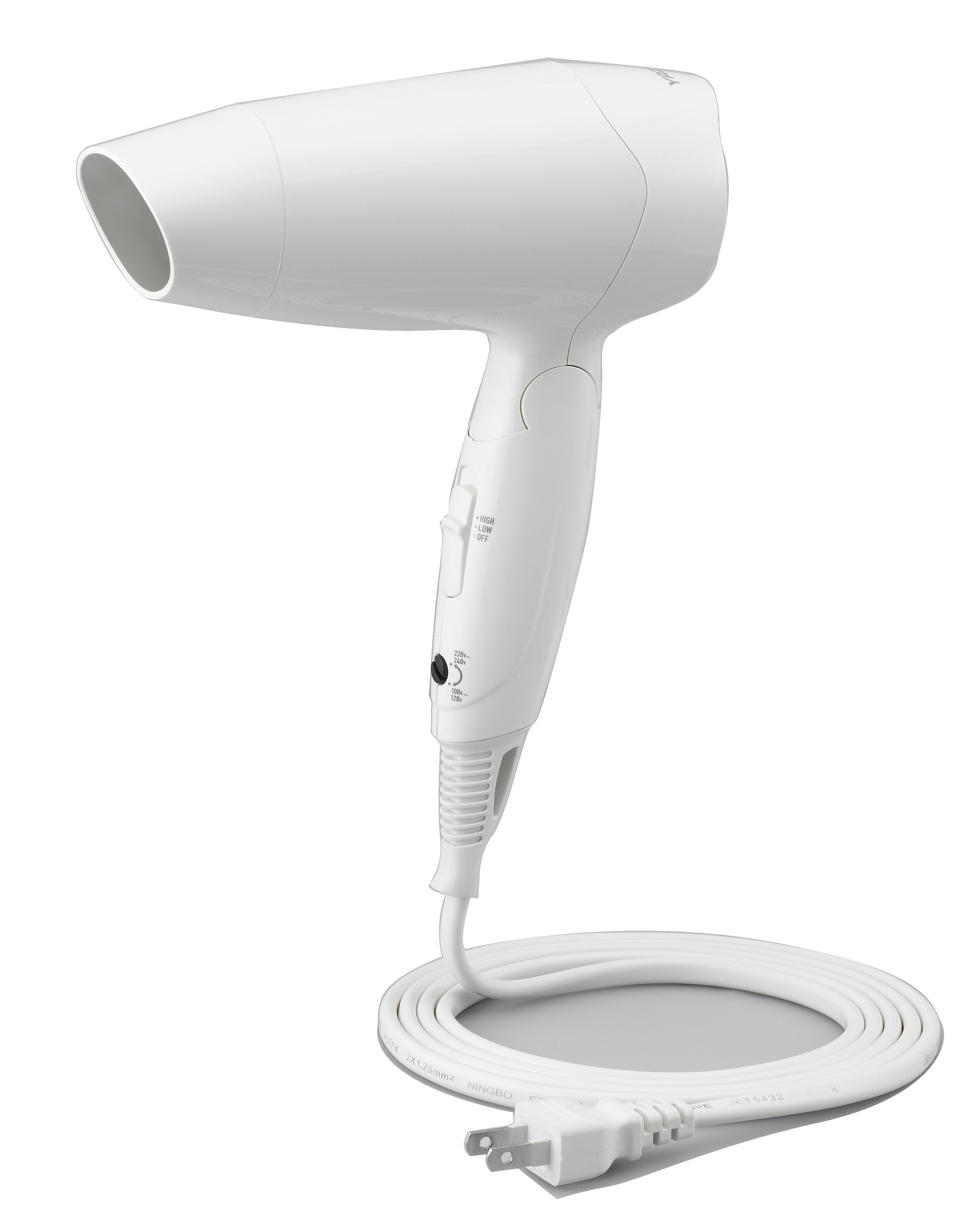 特長 ●日本でも海外でも使えます。●世界中で使える変圧器内蔵●持ち手を折りたためばコンパクトに収納できます。●重量は8インチタブレット1台分の約385g●風力2段階調整 商品仕様 ●材質:ABS●本体色:ホワイト●定格電圧:100~120V/220V~240V●周波数:50Hz/60Hz●消費電力:100V:800W/240V:1200W●コード長:約1.8m(取り外し不可)●本体サイズ:約(W)175×(H)230×(D)70mm●質量:約385g●付属品:専用ポーチ