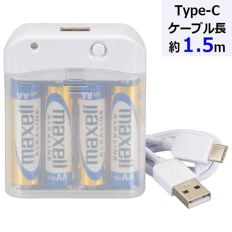 電池式充電器(単3形×4本付属/Type-Cケーブル1m)_01-7162_MAV-LR03C-W_OHM(オーム電機)
