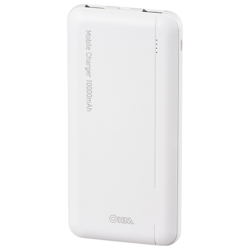 モバイルバッテリー(10000mAh/スマホ充電2回/3台同時充電可/USB AtoCケーブル付/ホイップクリーム)_05-0804_SMP-MB100-W_OHM(オーム電機)