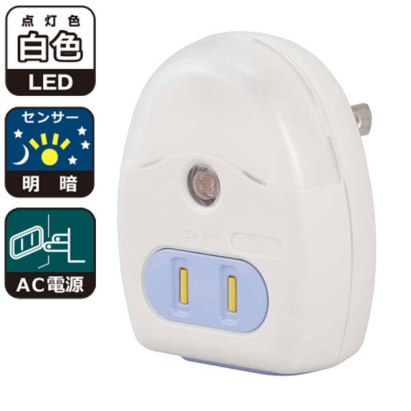 2個口コンセント付LEDナイトライト(明暗センサー付/白色)_04-0359_R39MS-W_OHM(オーム電機)