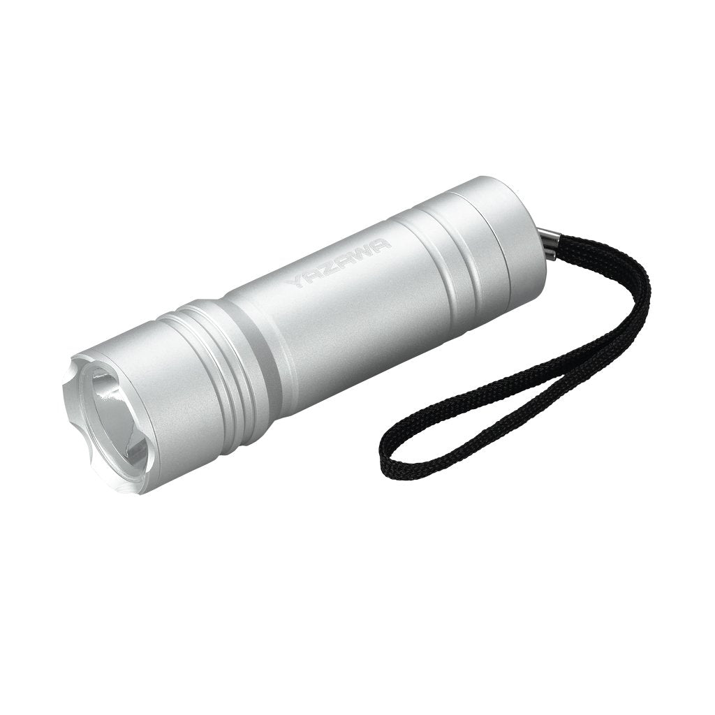 特長 ●コンパクトで軽量かつ持ちやすいデザイン●雨の中でも使用できる便利な防末型です。●アウトドア・災害時にオススメのアイテム 商品仕様 ●材質:アルミ●光源:白色LED×1灯(交換不可)●電源:単4形乾電池×4本(別売)●光束:HIGH:約240lm LOW:約35lm(最大値)●防水性能:IP-X4相当●照射距離:約165m(HIGH)●連続点灯時間:HIGH:約2.5時間 LOW:約5時間●点灯モード切替:HIGH・LOW・点滅●本体寸法:約Φ21×(H)97mm●本体重量:約68g(本体のみ)