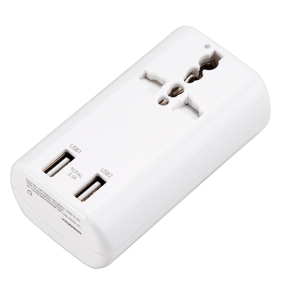 海外用マルチ変換プラグUSB付3.1A白_HPM53AWH_YAZAWA(ヤザワコーポレーション)