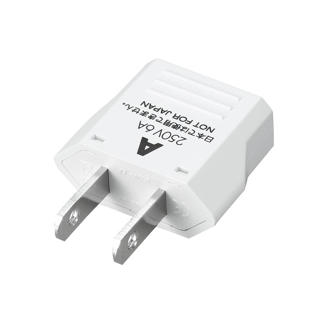 特長 ●出張や海外旅行の必需品です。●海外で日本の電気製品を使うための変換プラグです。●製品の組立方法がネジ式→溶着式になり、耐久性が向上しました。●差込口が2ピンタイプは3ピンタイプ(アース付)に対応します。 商品仕様 ●プラグタイプ:A●定格:250V 6A●本体寸法(mm):W36×H46×D15●本体質量(g):約12【ご注意】※日本国内にて本品を使用する事はできません。本品は日本の電気製品を海外で使う為のプラグアダプターです。※本品は電圧の変換はできません。電圧の変換が必要な場合は別途変圧器が必要です。