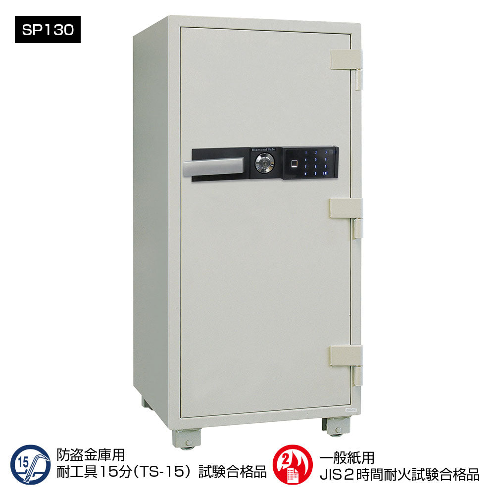 SP130 ダイヤセーフ 指紋式業務用耐火金庫 指紋式 指紋認証タイプ 2時間耐火 2時間耐火 310kg 170L 強化型金庫(TSグレード)