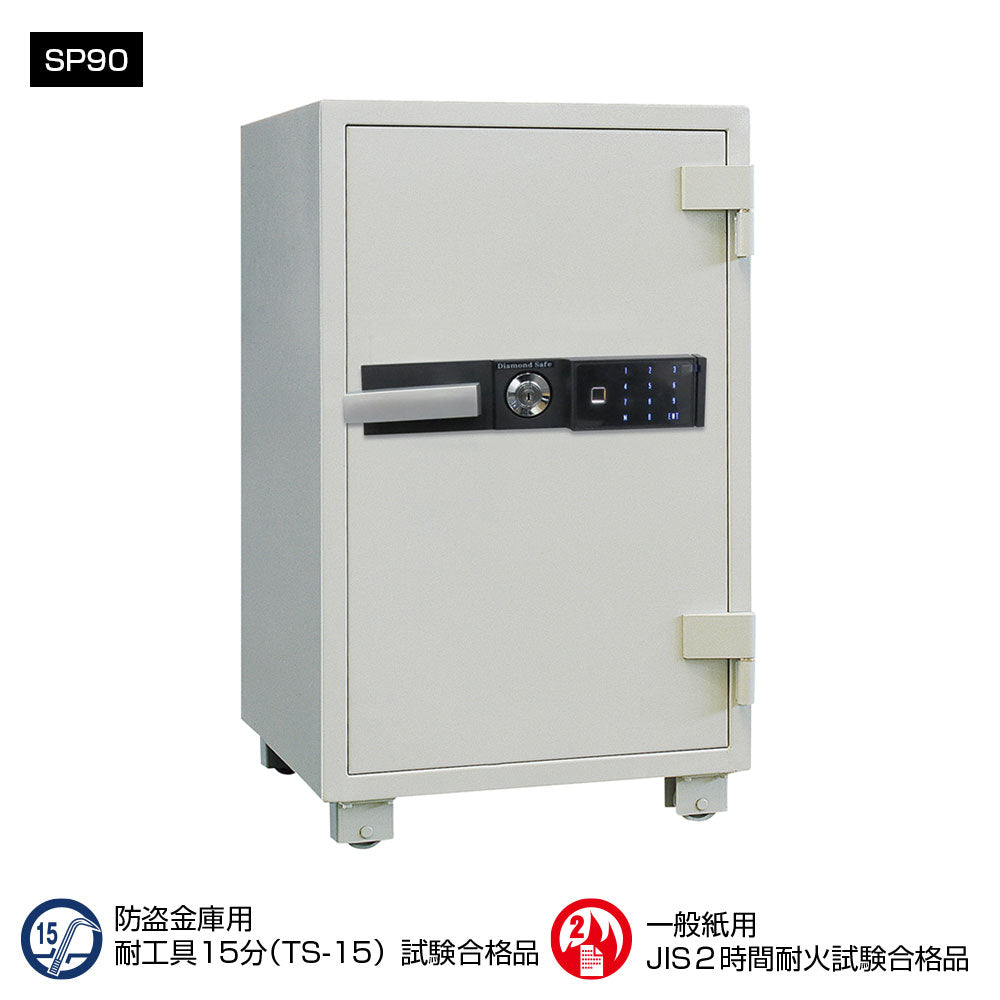 SP90 ダイヤセーフ 指紋式業務用耐火金庫 指紋式 指紋認証タイプ 2時間耐火 2時間耐火 220kg 105L 強化型金庫(TSグレード)
