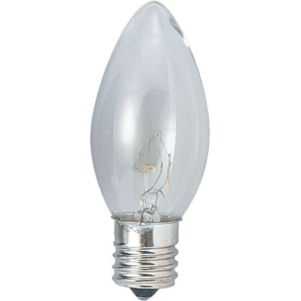 おすすめポイント ●長寿命に設計された電球です。常夜灯や電飾に最適です。 商品仕様 品名 ローソク球 10W クリア E12 品番 C91710C カラー クリア 定格寿命(h) 1,500 全長(mm) 75 径(mm) 30 口金 E17 消費電力(W) 10 パッケージサイズ(mm) W65×H110×D30 本体寸法(mm) φ30×H75...