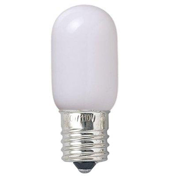 おすすめポイント ●長寿命に設計された電球です。常夜灯や電飾に最適です。 商品仕様 品名 ナツメ球 10W ホワイト E17 品番 T201710W カラー ホワイト 定格寿命(h) 2,000 全長(mm) 48 径(mm) 20 口金 E17 消費電力(W) 10 パッケージサイズ(mm) W65×H110×D20 本体寸法(mm) φ20×H48...