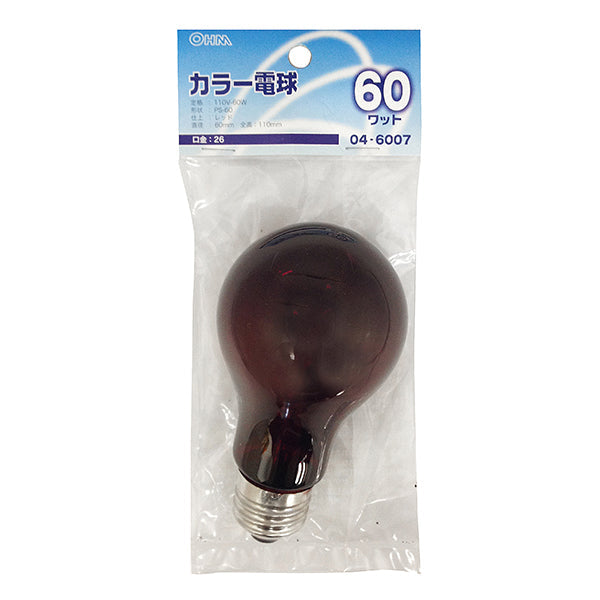 【納期約2週間】クリアカラー球PS60 60W レッド E26_04-6007_LB-PS6660-CR_OHM(オーム電機)
