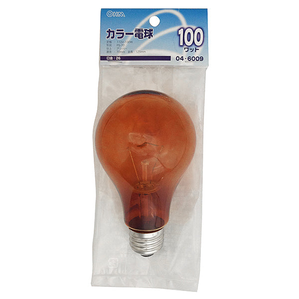 【納期約2週間】クリアカラー球PS70 100W アンバー E26_04-6009_LB-PS7600-AN_OHM(オーム電機)
