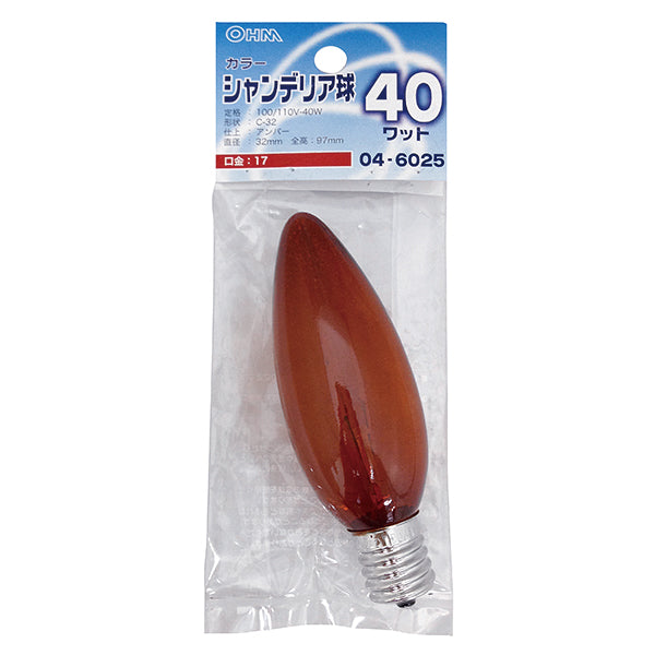【納期約2週間】シャンデリア球 クリアカラー(40W/アンバー/C-32/E17)_04-6025_LB-C2740-AN_OHM(オーム電機)