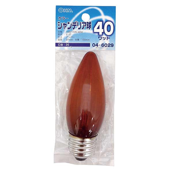 【納期約2週間】シャンデリア球 クリアカラー(40W/アンバー/C-37/E26)_04-6029_LB-C7640-AN_OHM(オーム電機)