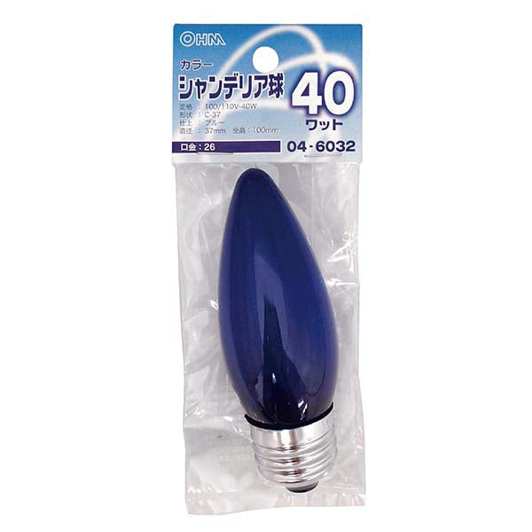 【納期約2週間】シャンデリア球 クリアカラー(40W/ブルー/C-37/E26)_04-6032_LB-C7640-CA_OHM(オーム電機)