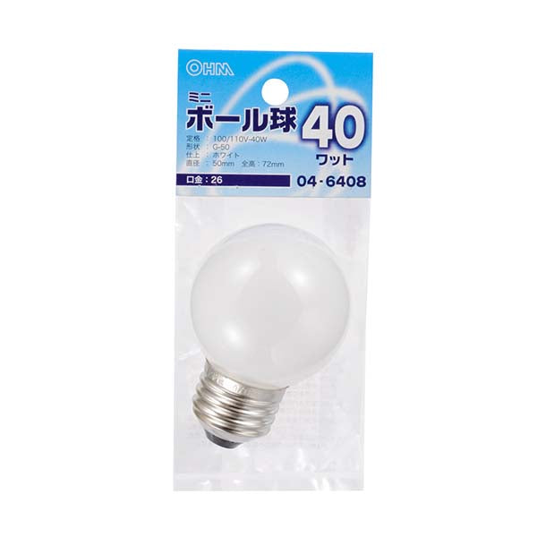 ミニボール球(40W/ホワイト/G50/E26)_04-6408_LB-G5640-W_OHM(オーム電機)