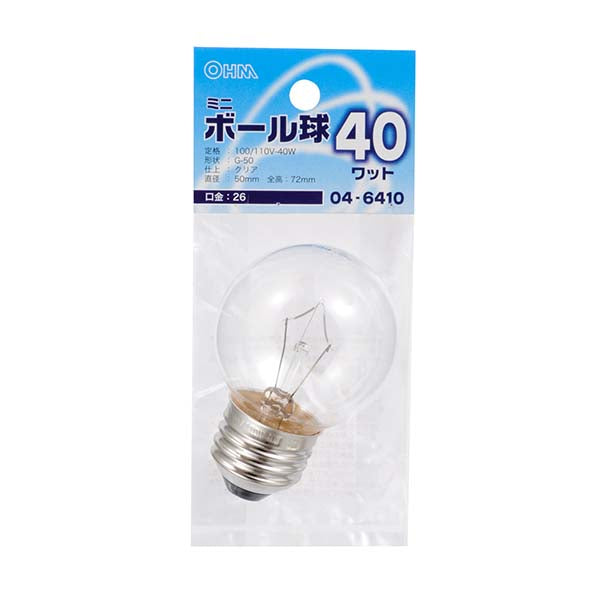 ミニボール球(40W/クリア/G50/E26)_04-6410_LB-G5640-C_OHM(オーム電機)
