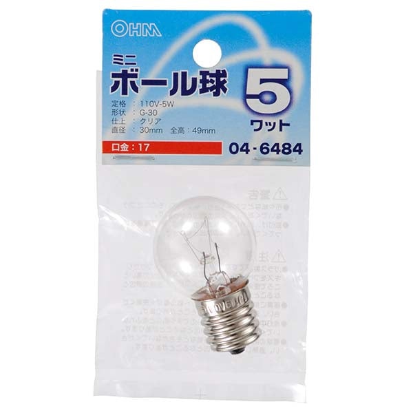 LB-G3705-C ミニボール球(5W/クリア/G30/E17)