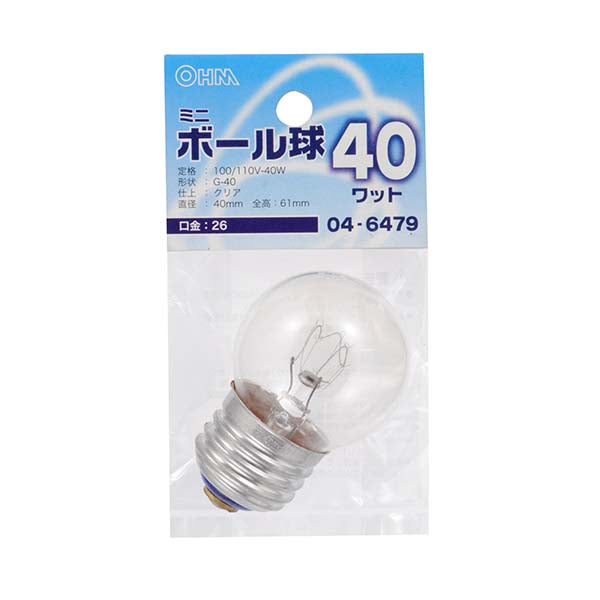 ミニボール球(40W/クリア/G40/E26)_04-6479_LB-G4640-C_OHM(オーム電機)