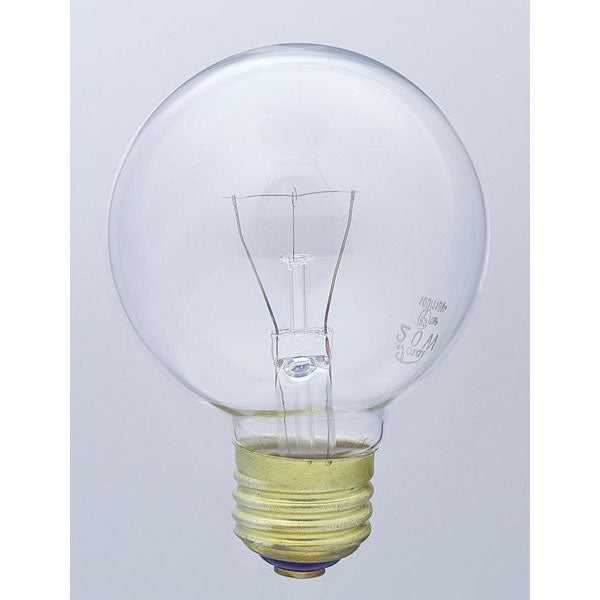 特長 ●住宅、店舗、ホテルなどのムード照明、装飾照明などに幅広く使用でkます。 商品仕様 備考 定格: ・電圧 100/110V ・消費電力 20W ・寿命:約2,000時間 備考 本体サイズ: ・全長:100mm ・バルブ径:70mm ・口金:E26 入数 1個 カラー クリア