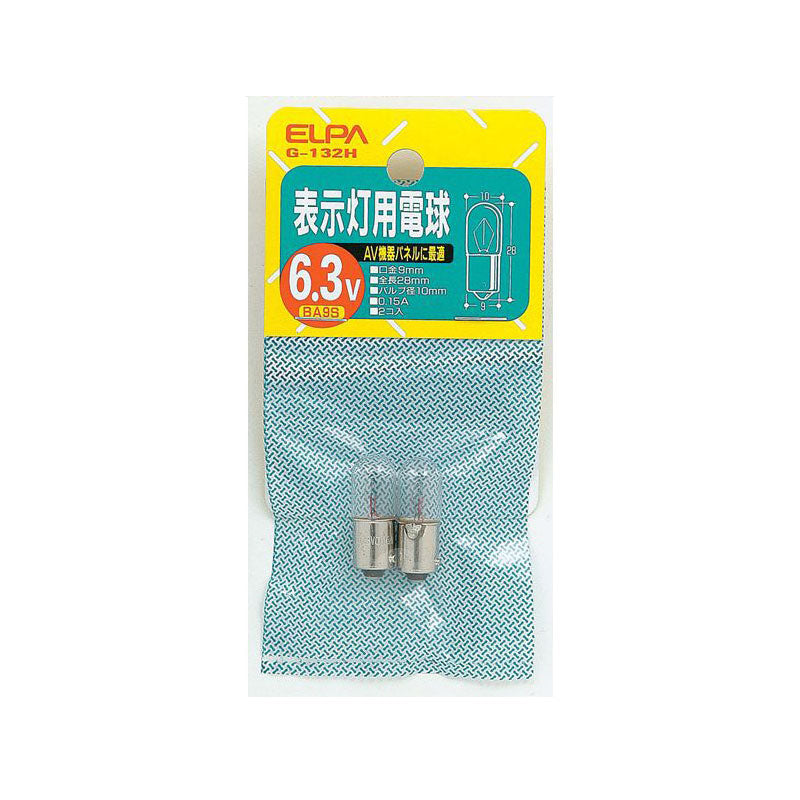 特長 ●AV機器パネルに最適●主に、機器などのパネル面の表示等、照明灯などに使用する電球です。 商品仕様 備考 定格: ・電圧 6.3V ・消費電力 0.9W ・寿命:約2,000時間 備考 本体サイズ: ・全長:28mm ・バルブ径:10mm ・口金:BA9S 入数 2個 カラー クリア