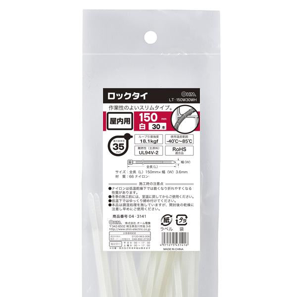 ロックタイ(150mm/白/30本入り)_04-3141_LT-150W30WH_OHM(オーム電機)