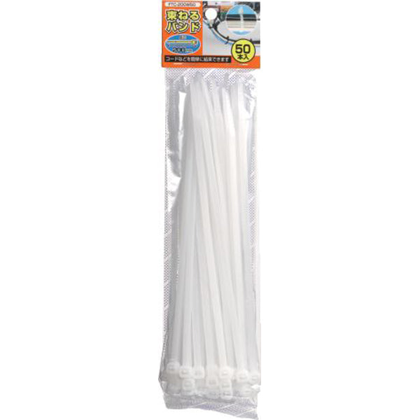 束ねるバンド 200mm 50本 ホワイト_FTC200W50_YAZAWA(ヤザワコーポレーション)