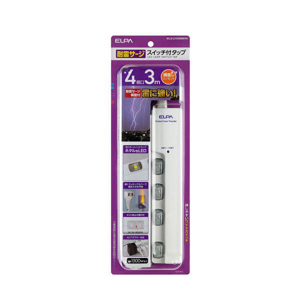 WLS-LY430MB(W) LEDランプスイッチ付タップ 横挿し 4個口 3m_ELPA(エルパ・朝日電器)