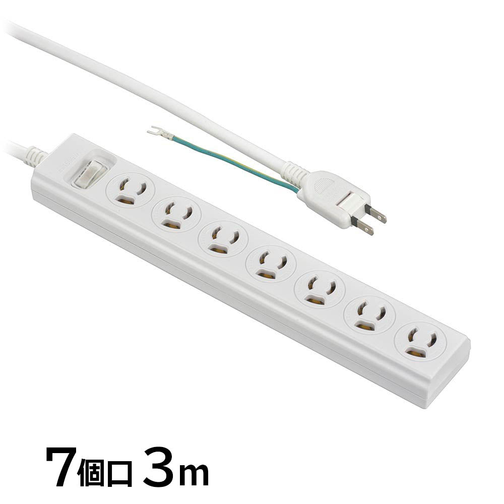 2ピンプラグ対応 雷ガード付き抜け止めタップ(7個口/3m/裏面マグネット付き/ホワイト)_00-1746_HS-TKL732PB3-W_OHM(オーム電機)
