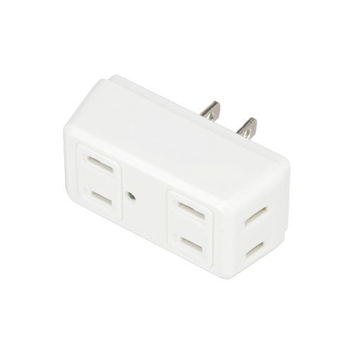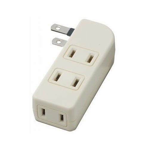 特長 ● 幅の狭い場所での使用に最適な前面2個口・下面1個口仕様です。● コンパクトサイズなのでスペースを気にせず配線できます。● プラグはホコリや湿気によって発生するトラッキング火災を予防する絶縁カバー付きです。● コンセントキャップ付きなので使わない差込口にホコリが入るのを防ぎます。 商品仕様 カラー 白 定格入力 125V 15A 合計1500Wまで 本体サイズ(mm) W30×H55×D20