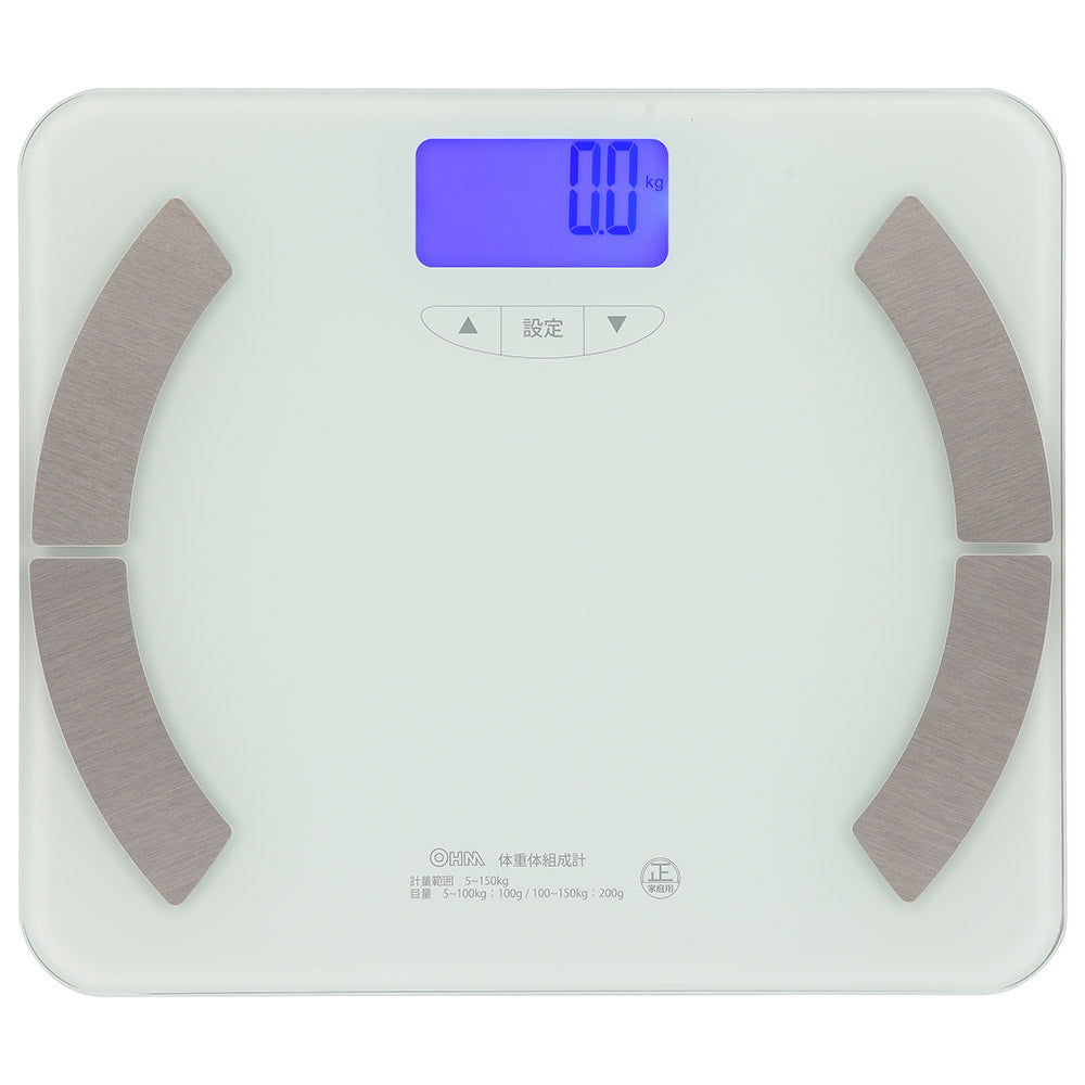 体重体組成計(強化ガラス仕様/バックライト付/単4形×2本使用/ホワイト)_08-3923_HB-KG12R1_OHM(オーム電機)