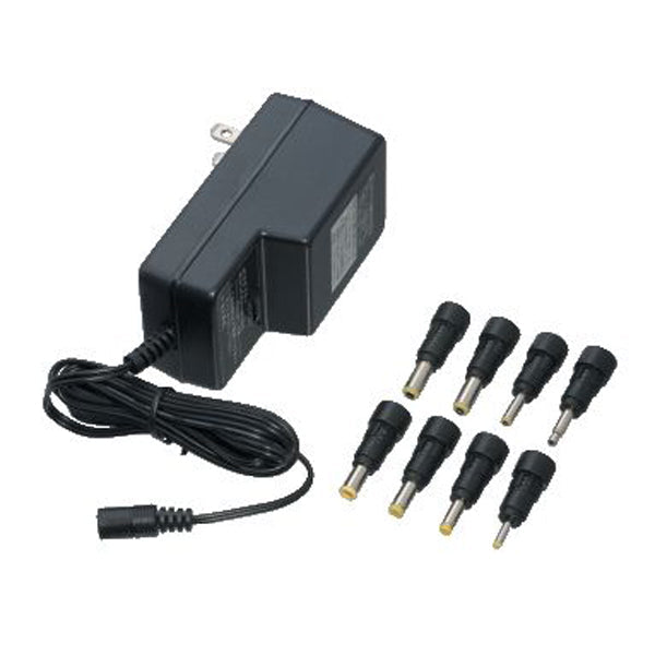 おすすめポイント ●出力電圧は6段階に切替可能です。 ●変換プラグ8本付きなので、多種の製品に使用可能です。 商品仕様 品名 AC/DCアダプター 300mA 品番 ACM300 カラー ブラック コード長(m) 1.8 パッケージサイズ(mm) H230×W130×D65 本体重量(g) 274 本体寸法(mm) H108×W49×D58 8本タイプ/プラグサイズ(mm) ①外径φ2.35 内径φ0.7②外径φ4 内径φ1.7③外径φ4.75 内径φ1.7④外径φ5.5 内径φ3.3⑤外径φ3.5⑥外径φ3.5 内径φ1.3⑦外径φ5.5 内径φ2.5⑧外径φ5.5 内径φ2.1