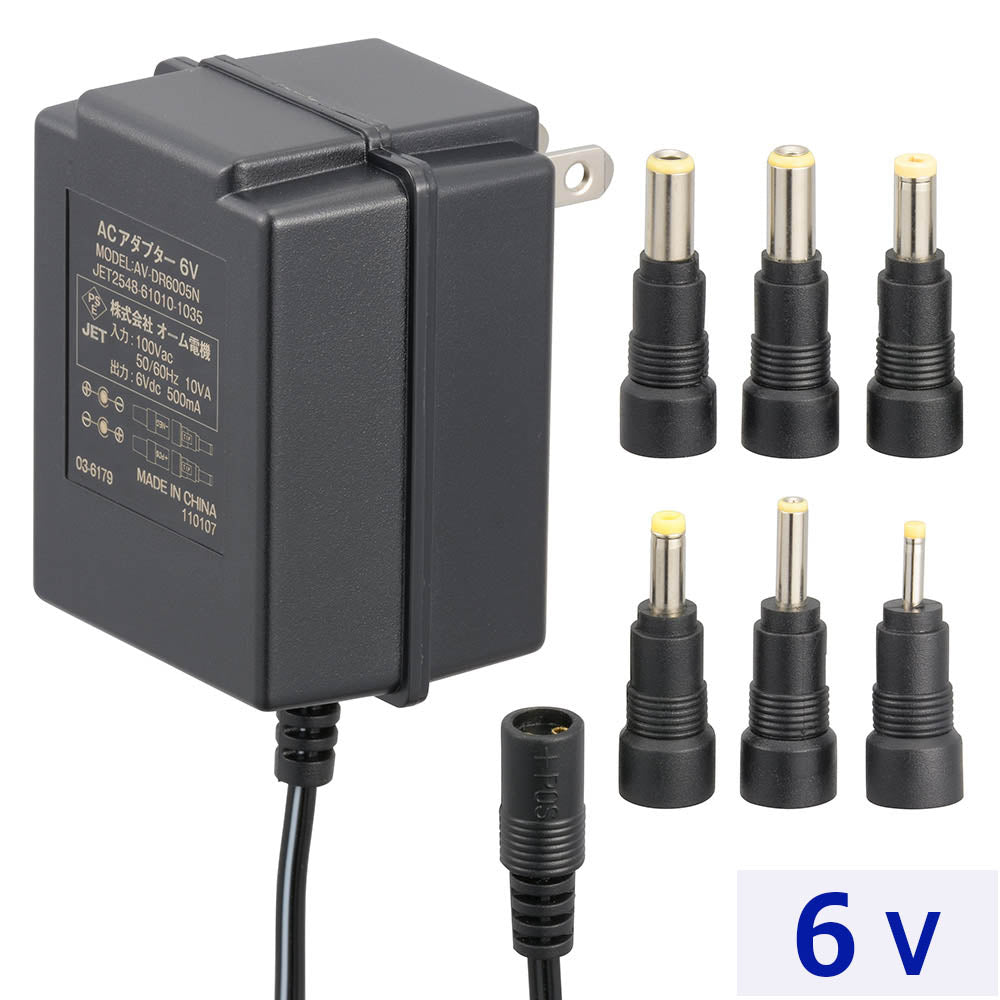 AC電源アダプター(6V/0.5A/変換プラグ6セット/コード1.8m/両極性対応/ポータブル機器専用)_03-6179_AV-DR6005N_OHM(オーム電機)