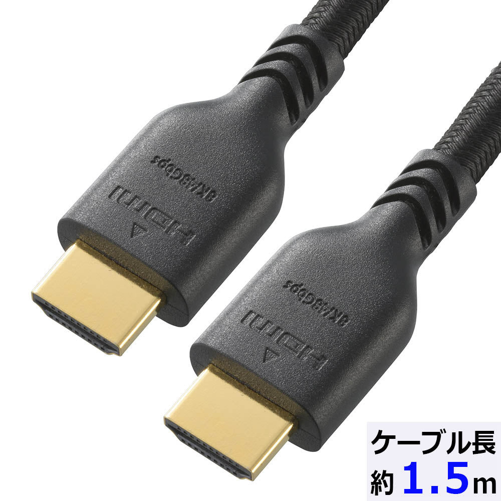 特長 ●強化プラグ&メッシュ採用で切れにくく、当社従来品より約2倍の耐久性●8K(60P)/4K(120P)/2K対応、最大48Gbpsの超高速で高画質・高音質のデジタル信号を伝送します●Ultra High Speed HDMI Cable規格認証商品●Dynamic HDR対応で映像フレームごとに適切な明るさとコントラスト(動的明暗)を表現できます●eARCで高ビットレート(192kHz24-bit)と非圧縮の5.1chと7.1ch音声に対応します●HDMIイーサネットチャンネル(HEC)対応●大口径銅線と3重構造の金属シールド採用で外来ノイズを低減し高遮蔽性を実現●端子部分に24金メッキを採用、さびに強く経年劣化を防ぎます●広色域BT.2020対応●鉛を含まない、環境にやさしい無鉛はんだを使用 商品仕様 ●コネクター形状:HDMIプラグ(Aタイプ)⇔HDMIプラグ(Aタイプ)●ケーブル長:1.5m※8K(最大速度48Gbps)で伝送するには機器側の対応が必要です