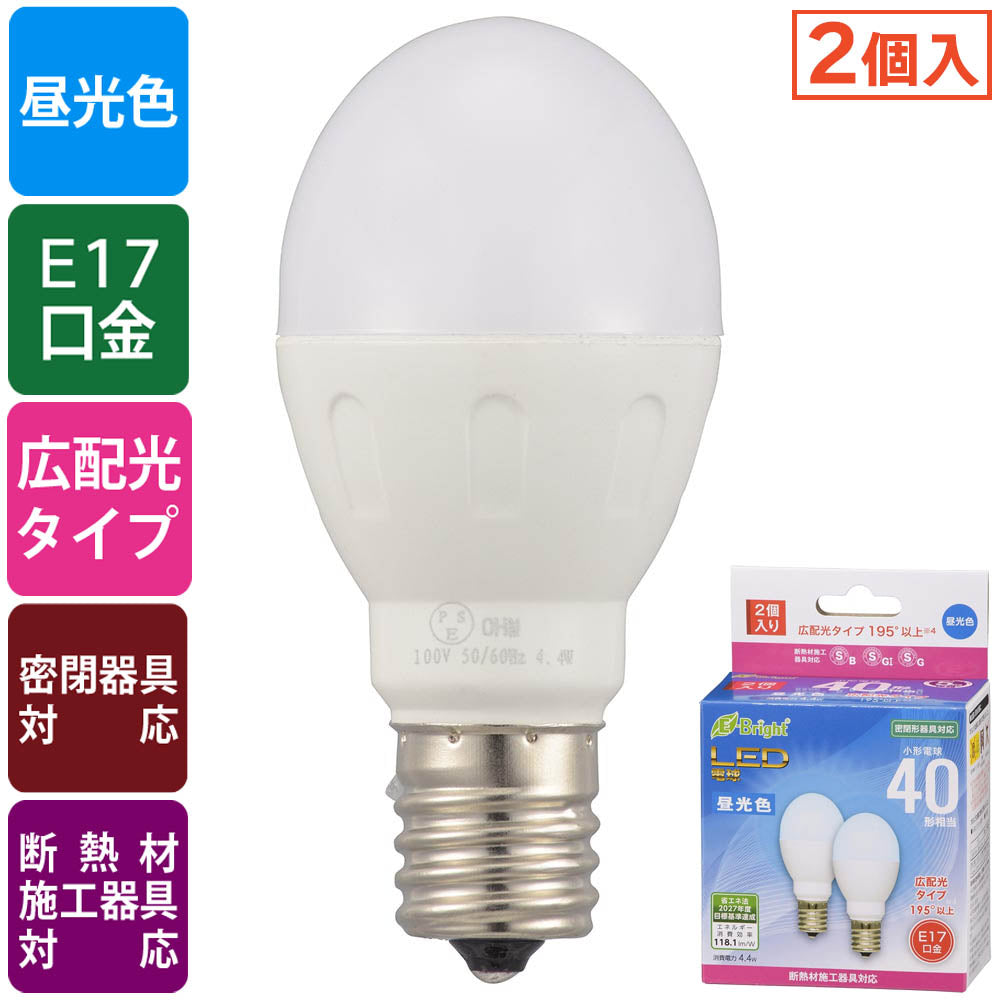 LED電球 小形(40形相当/520 lm/4.4W/昼光色/E17/広配光195°/密閉器具対応/断熱材施工器具対応/2個入)_06-4810_LDA4D-G-E17 IH23 2P_OHM(オーム電機)
