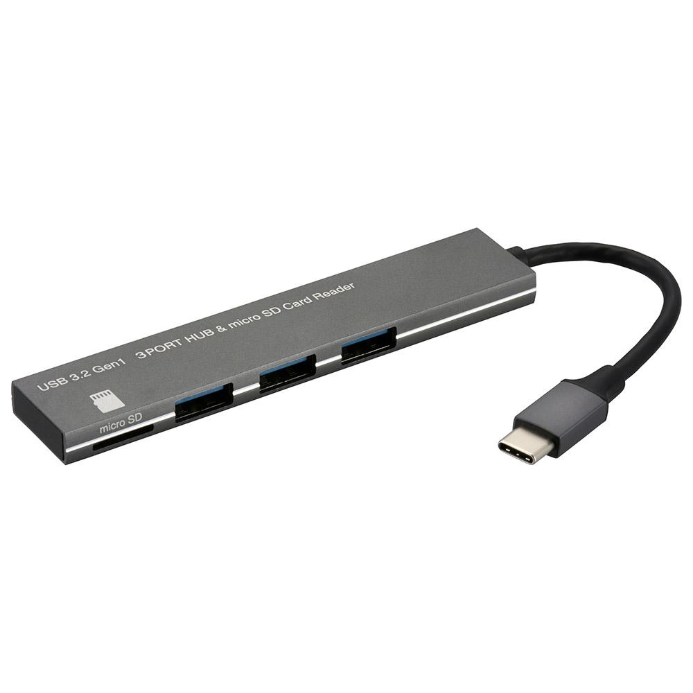 【USB Type-Cコネクタ接続】microSDカードリーダー+USB3.2Gen1×3ポートハブ(アルミボディ)_01-3976_PC-SH3PC08-H_OHM(オーム電機)