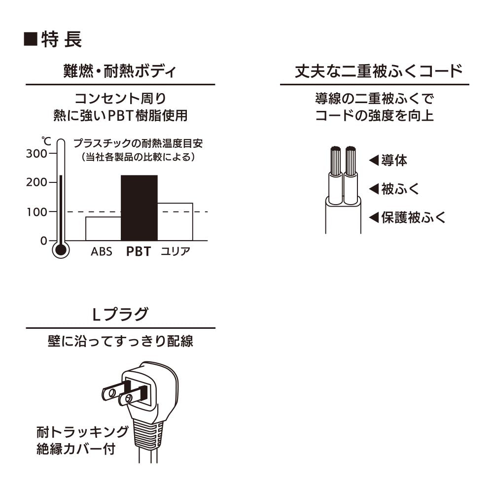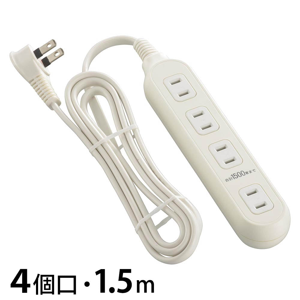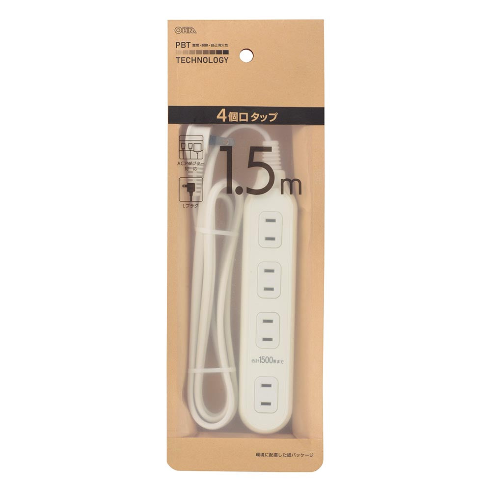 スリムタップ(4個口/1.5m/L型プラグ/ホワイト)_00-1648_HS-T415W22_OHM(オーム電機)