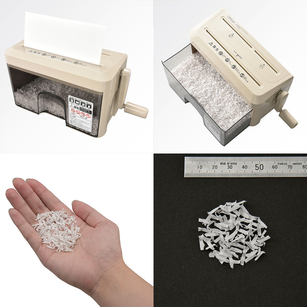 ●卓上に置いても邪魔にならない、コンパクトな手動式シュレッダーです