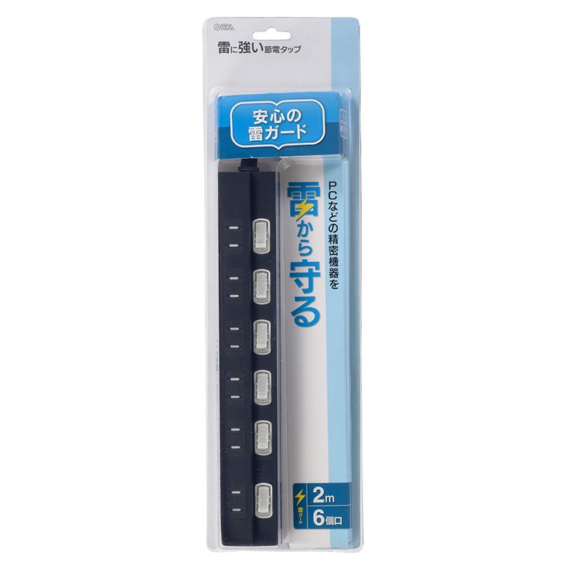 00-6945_HS-TPK62PBT-K_個別スイッチ付節電タップ(6個口/2m/ブラック)_OHM(オーム電機)