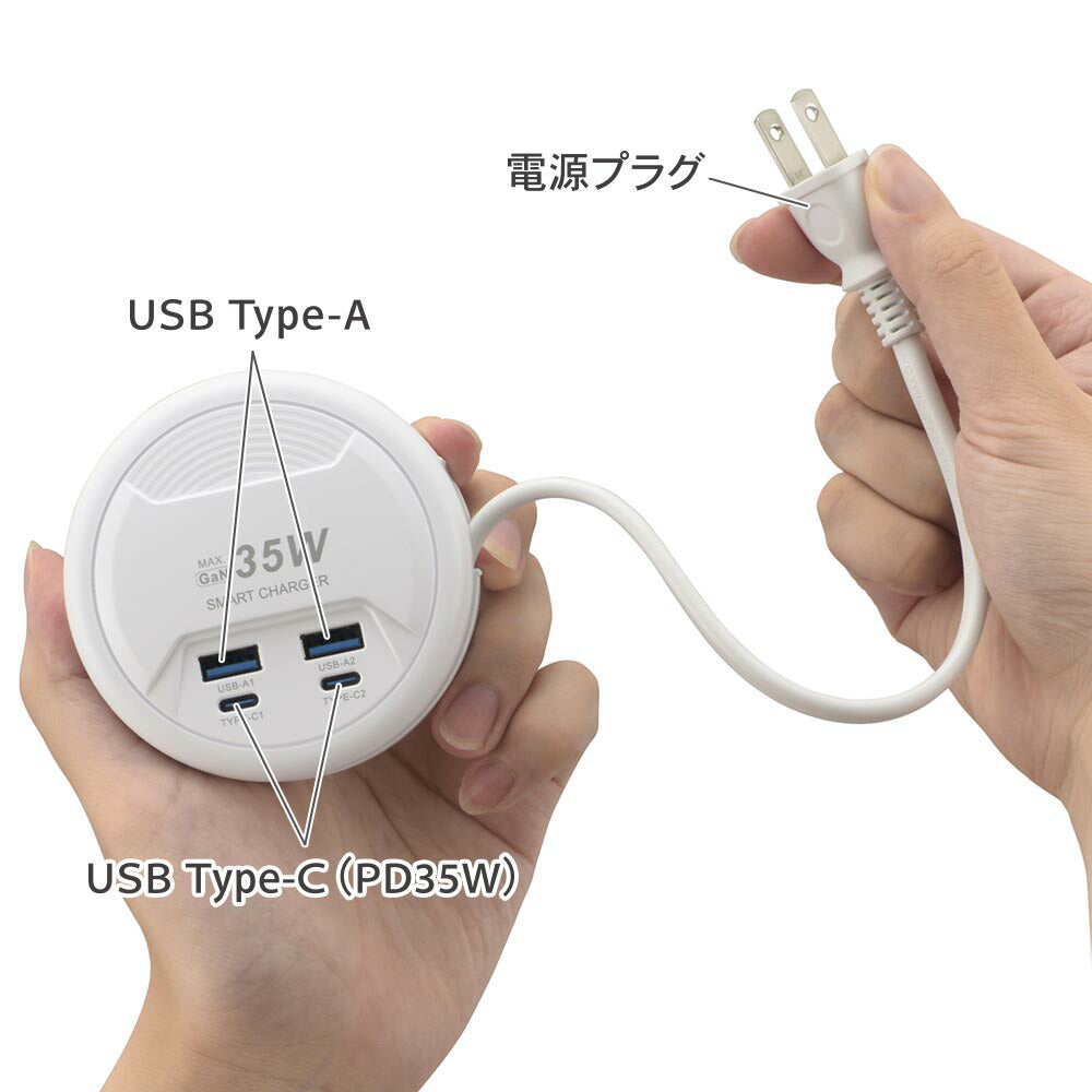モバイルUSBタップ(Type-A、C各×2/最大出力35W/GaN採用/PD対応/コード45cm/ホワイト)_00-7087_HS-AU2C235E-W_OHM(オーム電機)