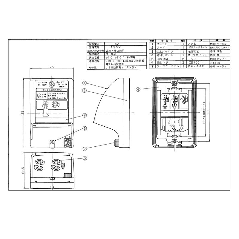 ●コンセントは回転抜け止め機能付。雨の飛沫、ホコリなどの侵入を防止する扉付きです
