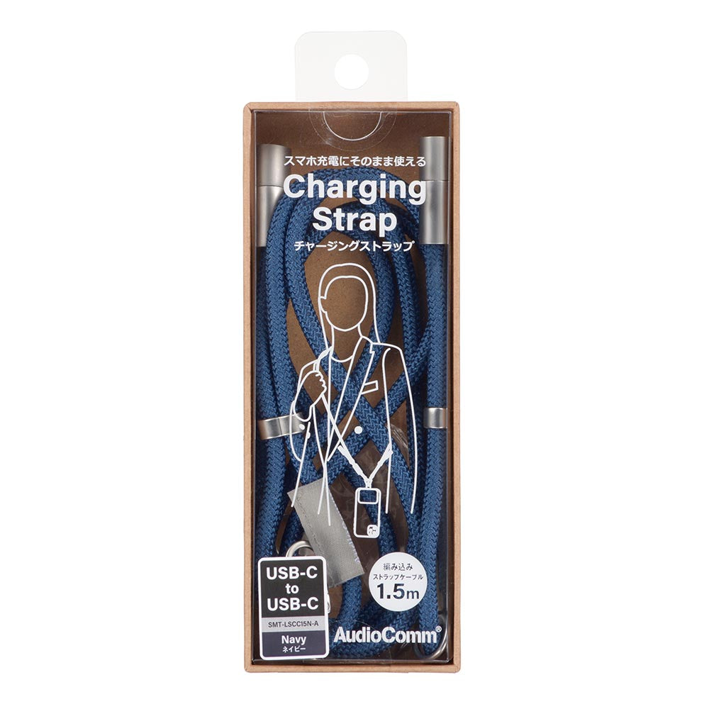 チャージングストラップケーブル(編み込み/USB-C to USB-C/1.5m/ネイビー)_01-7271_SMT-LSCC15N-A_OHM(オーム電機)