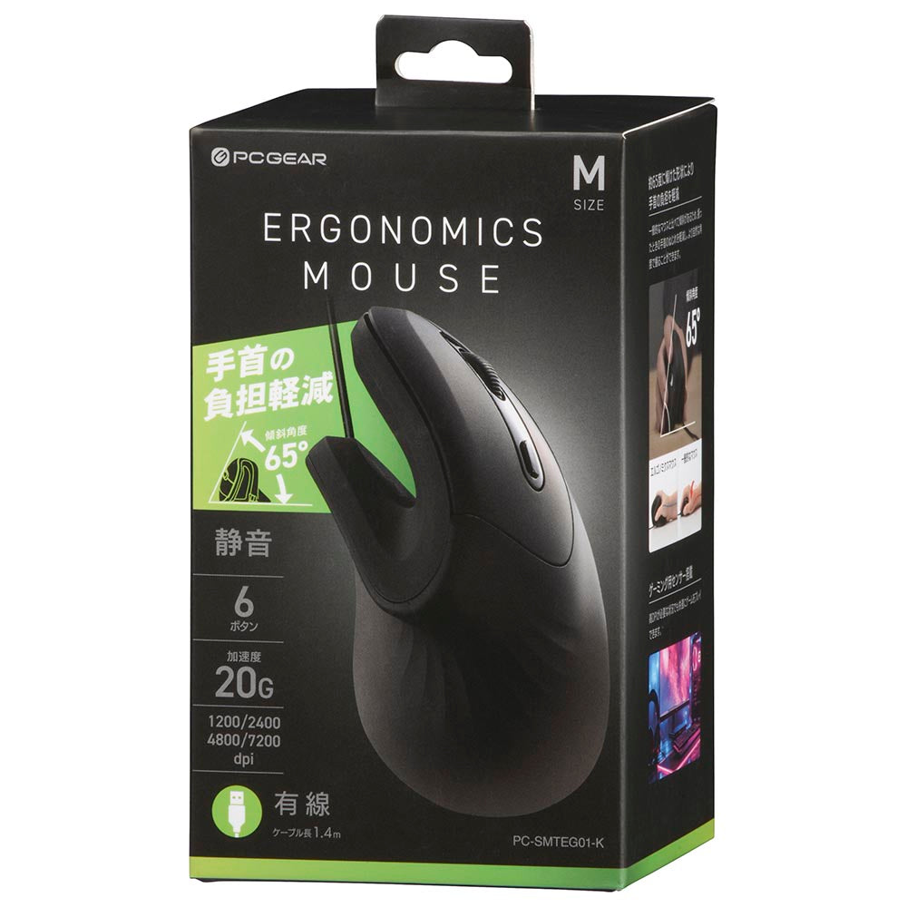 エルゴノミクスマウス(静音設計/6ボタン/加速度20G/ケーブル長1.4m/Mサイズ/ブラック))_01-7282_PC-SMTEG01-K_OHM(オーム電機)