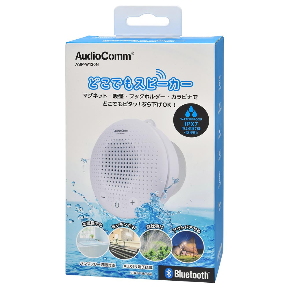 どこでもスピーカー(保護等級IPX7/LEDアンビエントライト付/マイク搭載/USB充電式/連続再生8時間/ホワイト)_03-2328_ASP-W130N_OHM(オーム電機)