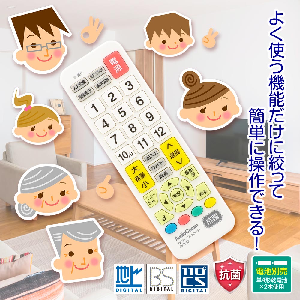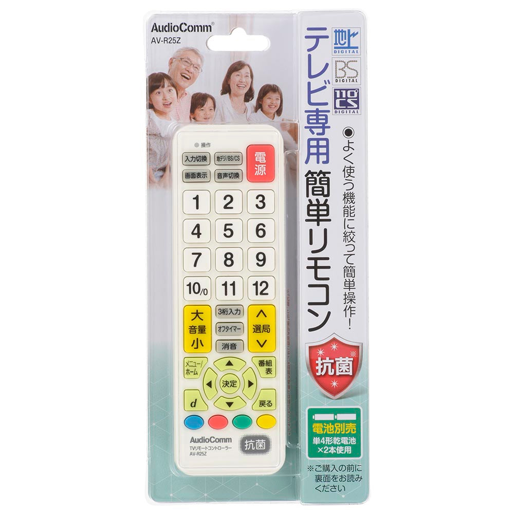 テレビ専用簡単リモコン(抗菌仕様/単4形×2本使用)_03-5009_AV-R25Z_OHM(オーム電機)