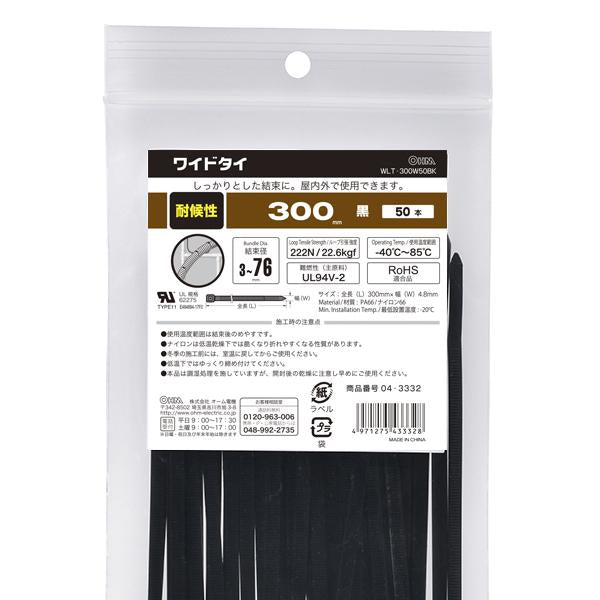 耐候性ワイドタイ(300mm/黒/50本入り)_04-3332_WLT-300W50BK_OHM オーム電機